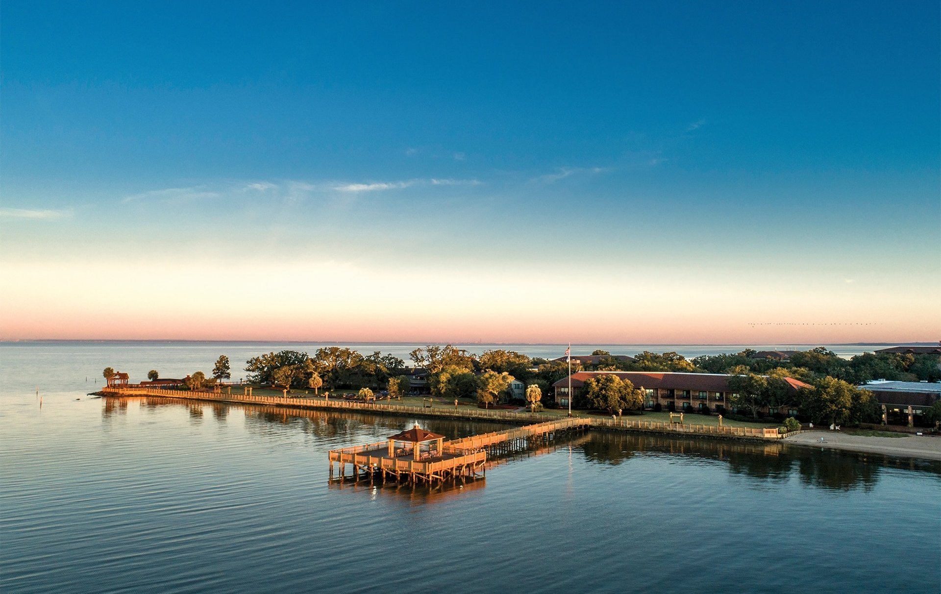 Relax as the sun dips below the horizon on Mobile Bay.